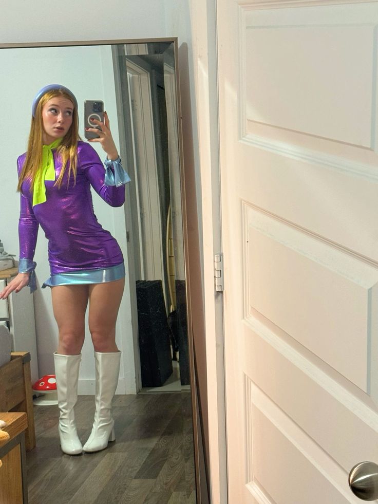 If you're looking for a cute couples Halloween costume or just want to dress up cute, Daphne is the go-to costume for you! You can use regular clothes and a pair of white boots to get this simple look down.
