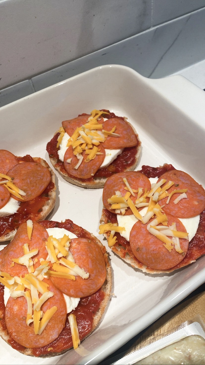 This English muffin pizza recipe is the perfect lunch or snack to make and it only takes 20 minutes! These mini pizzas can also work as a great appetizer meal for when you’re hosting at your home, or for when you want a snack that has a bit more to it. There’s nothing like having a delicious cheesy pizza but sometimes when you’re not super hungry, mini pizzas are the perfect bite-sized snack to go for instead.