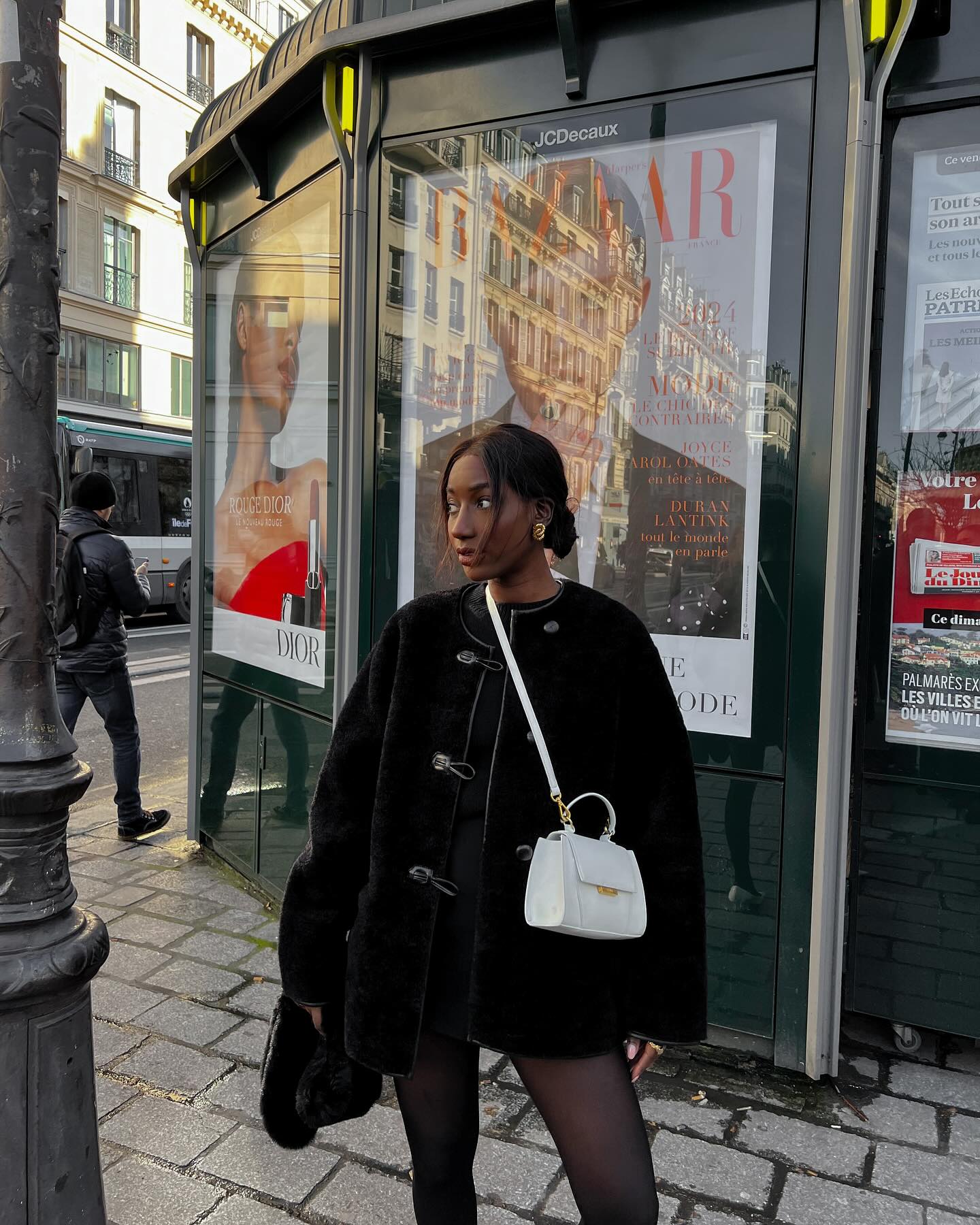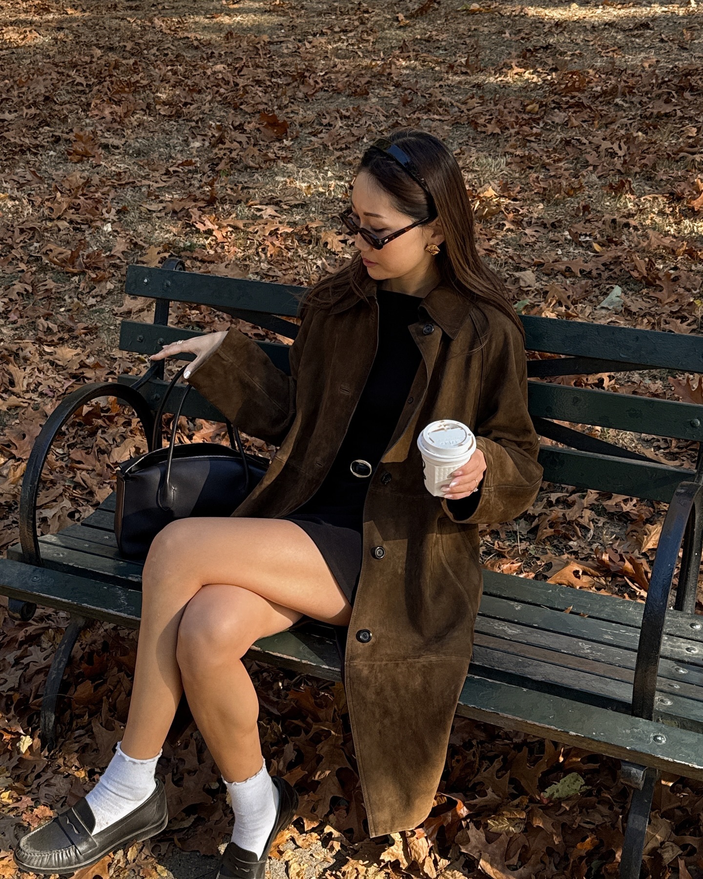 An all-black outfit is an elegant way to transition into fall fashion. It's sleek and also works well into the winter.