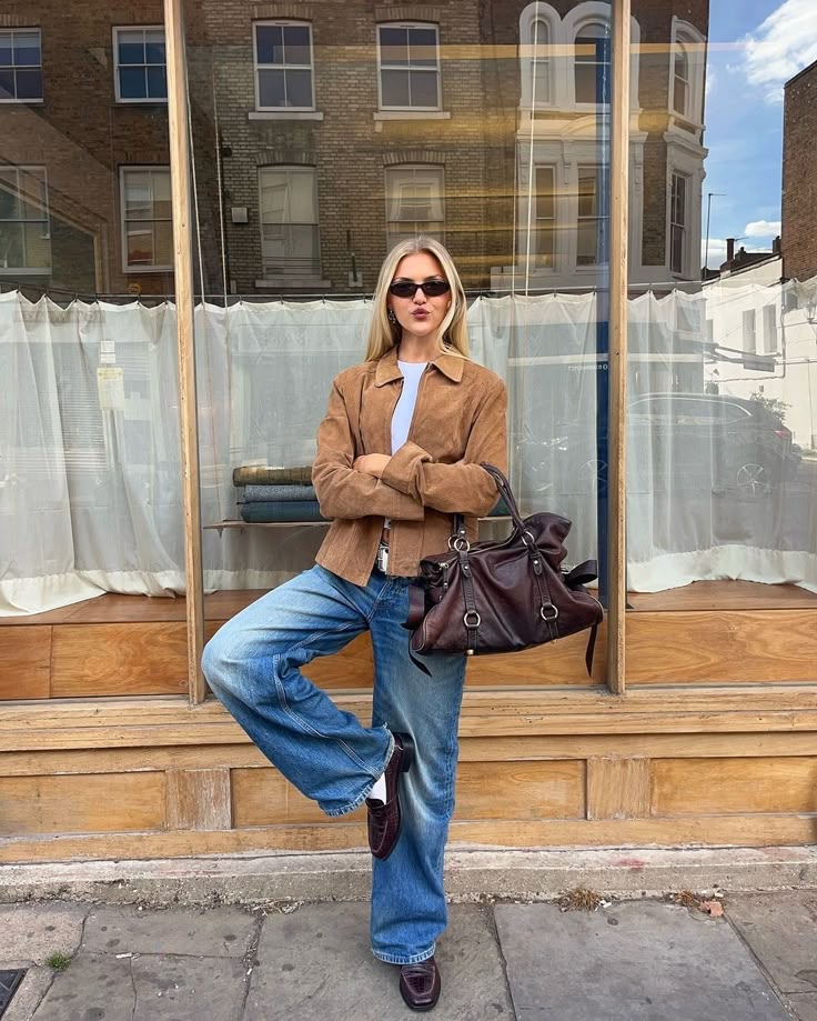 This gorgeous suede jacket completes this casual fall outfit. Not only is it a stylish piece to incorporate to your daily fits, but it's also a comfortable piece to elevate any outfit.