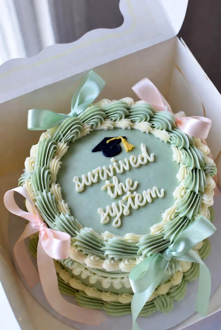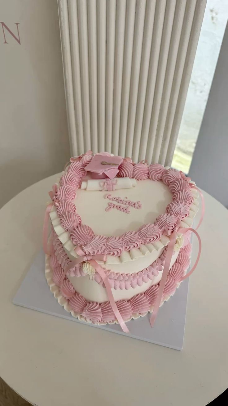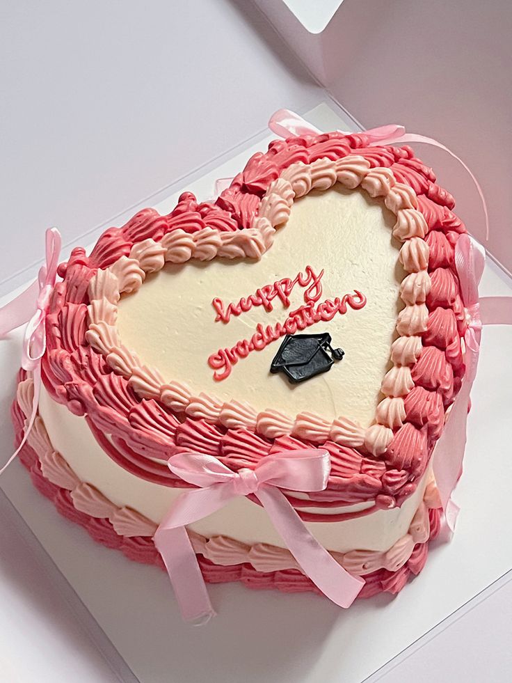 If you're a fan of the iconic Legally Blonde movies or are graduating Law school, this is one of the most perfect graduation cake ideas to copy! You can't go wrong with this infamous line from the movie on an aesthetic heart cake.