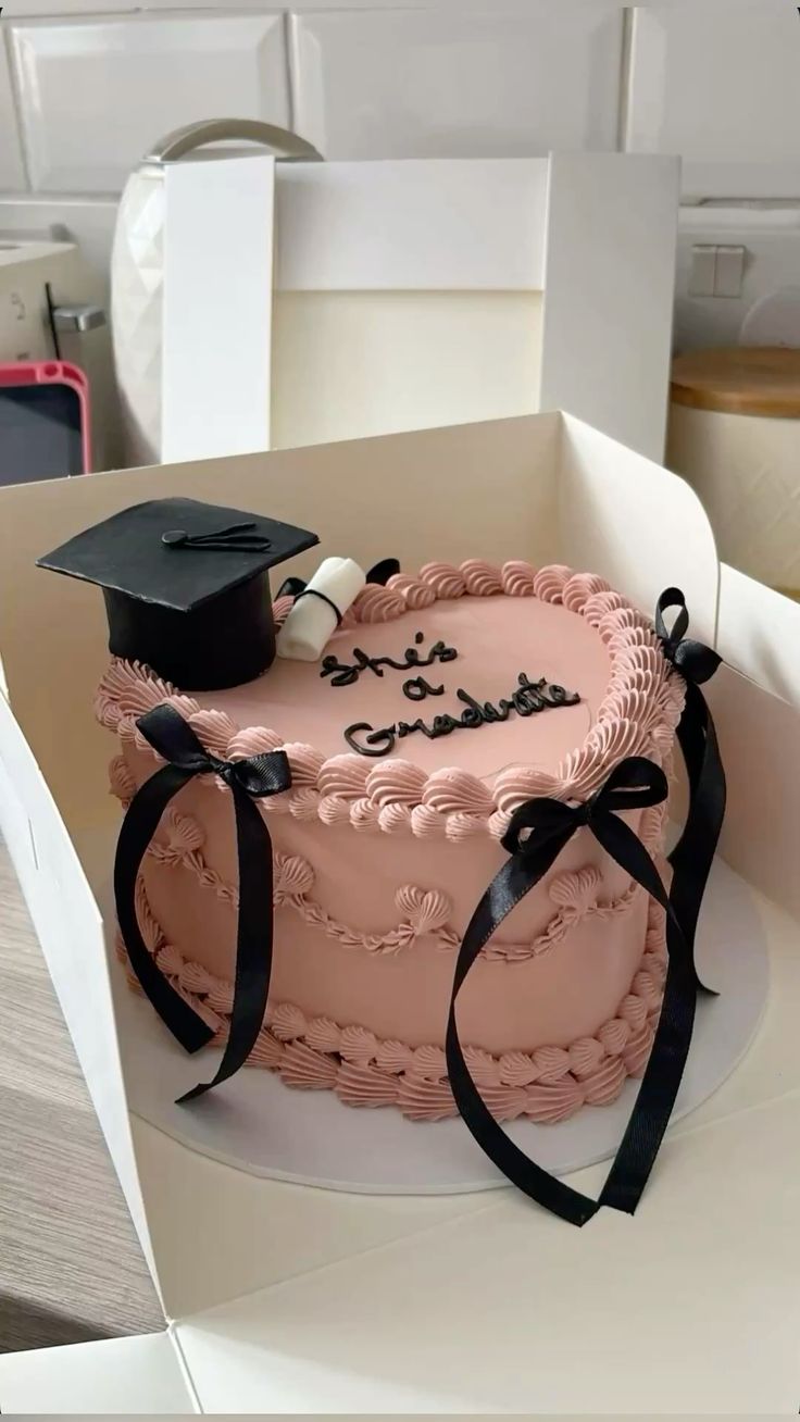 Coquette cakes like this have become the latest trendy cake design and people are absolutely loving them. This graduation cake is minimalist and the pink bows give it that gorgeous detail that'll easily match your party decorations.