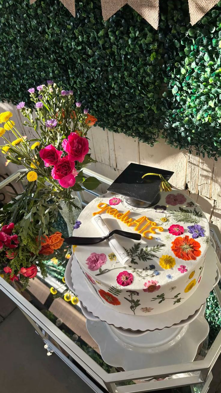 Celebrate reaching the milestone of getting your masters with this simple chic cake. The floral designs, small pearls and colours make this cake one that easily stands out.