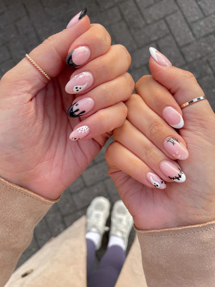 This Halloween nail art is equal parts spooky and chic. The minimal designs and black and white colour palette are an elegant combo you can't go wrong with.