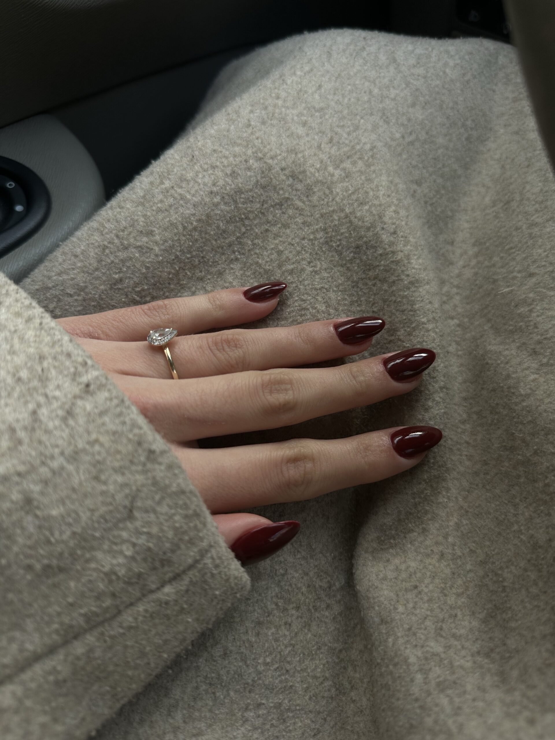 For an elegant, bold nail color this winter, try these deep red nails. They're a staple nail color that's the winter version of clean girl nails.