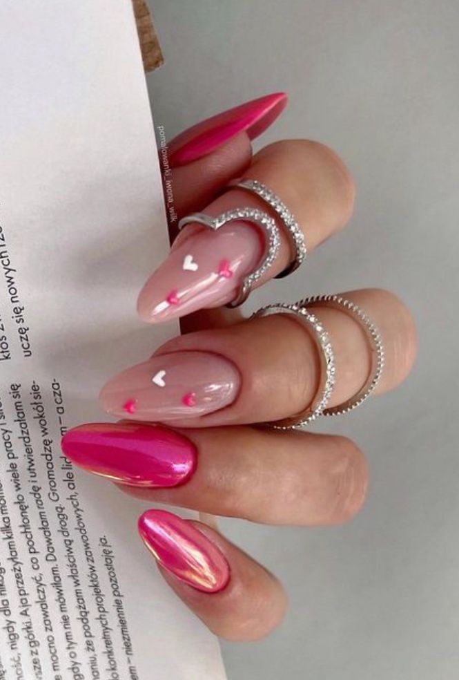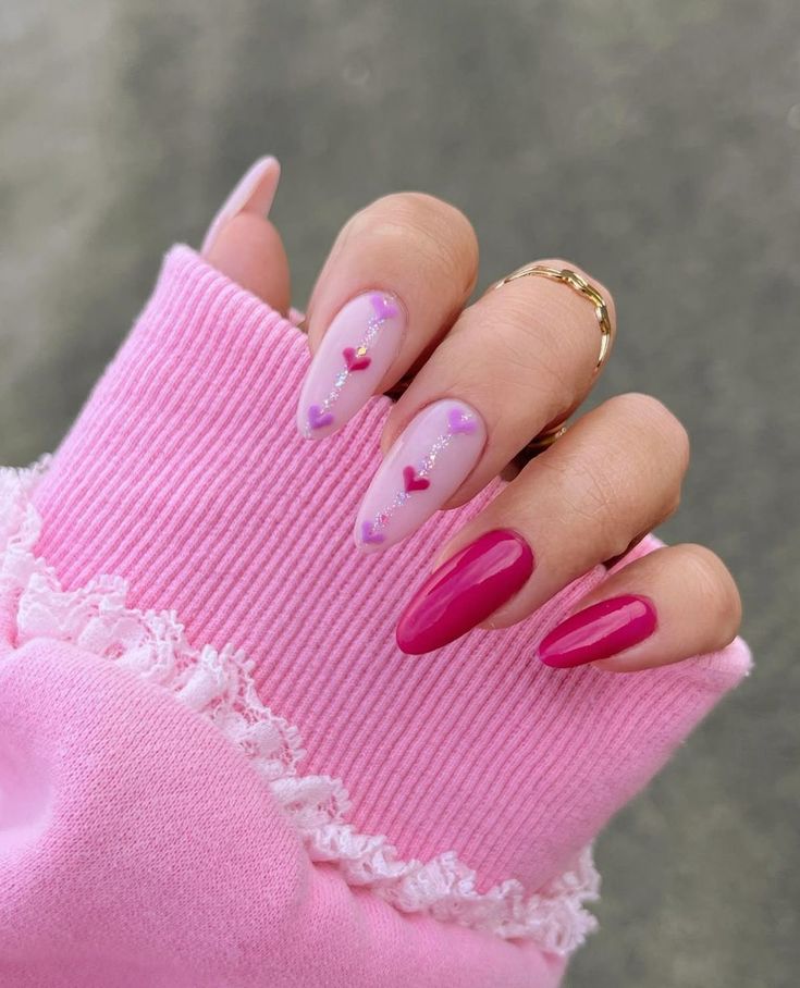 Having trouble deciding on a shade of pink? Try them all with this pretty nail idea for Valentine's. Whether you have a romantic date night planned or a Galentine's day with your girls, these nails are perfect for any occasion.